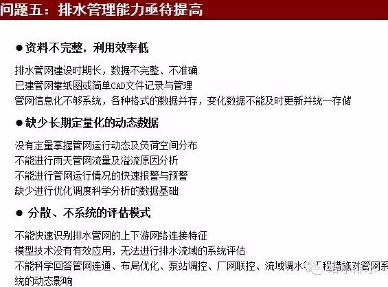 四是摸清現(xiàn)狀,參照《城市排水防澇設(shè)施普查數(shù)據(jù)采集與管理技術(shù)導(dǎo)則》的規(guī)定要求,完成數(shù)據(jù)采集、數(shù)據(jù)錄入、數(shù)據(jù)校核的工作,逐步摸查清楚排水管網(wǎng)的建設(shè)及運(yùn)行情況。在摸查清楚管網(wǎng)系統(tǒng)的情況的基礎(chǔ)上,要開發(fā)排水管網(wǎng)數(shù)字化信息平臺(tái),利用信息管理、模型模擬等技術(shù)實(shí)現(xiàn)對排水系統(tǒng)的排水能力評估、清淤分析、事故應(yīng)急分析,發(fā)現(xiàn)排水系統(tǒng)的薄弱環(huán)節(jié)和區(qū)域,提高管理效率。