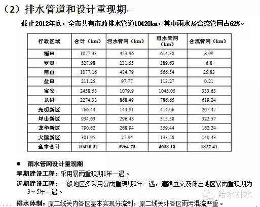 二是加大投入,加快排水設(shè)施的建設(shè)。深圳市現(xiàn)有管渠人均長度是0.7公里,城市排水管網(wǎng)的密度為5.38公里/平方公里。而在德國,2002年的人均排水長度已經(jīng)達(dá)到了5.44公里,管網(wǎng)的平均密度達(dá)到了10公里/平方公里以上,美國也基本上是這個(gè)水平。一般認(rèn)為排水管網(wǎng)的密度越高,排水管網(wǎng)的覆蓋面就越廣,服務(wù)范圍就越大。從前面數(shù)據(jù)比較的差異來看,還是需要加大投入,嚴(yán)控施工質(zhì)量,加快排水設(shè)施的有序建設(shè)。