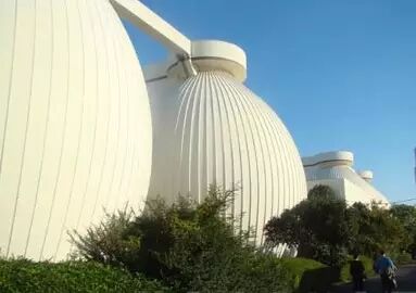 “卵形污泥消化罐的最大特點(diǎn)是與通常的圓筒形消化罐相比,在相同容積下表面積更小”,橫濱市環(huán)境創(chuàng)造局課長(zhǎng)輔佐、北部下水道中心資源化擔(dān)當(dāng)系長(zhǎng)桑原弘至介紹道。表面積越小,熱量的量就會(huì)越少,越容易維持污泥消化時(shí)所需要的溫度,更有利于污泥的消化。
