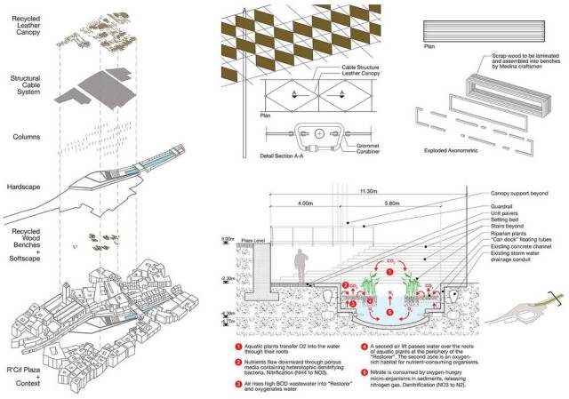 設(shè)計團隊與菲斯市水電局合作,系統(tǒng)地分析了舊城區(qū)及其周邊的城市生態(tài)背景,制定了分期施工的策略,尤其是改善水質(zhì)的措施成為解決城市里社會和經(jīng)濟等問題的核心。