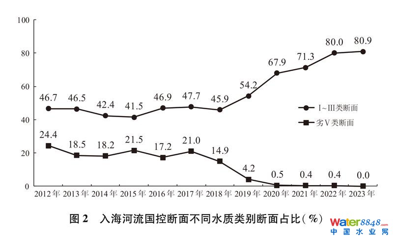 ①斷面是指為測量和采集水質(zhì)樣品,設(shè)置在江河或渠道上垂直于水流方向上的整個剖面。國控斷面是指中國布設(shè)的國家地表水環(huán)境質(zhì)量評價、考核、排名監(jiān)測斷面(點位)。