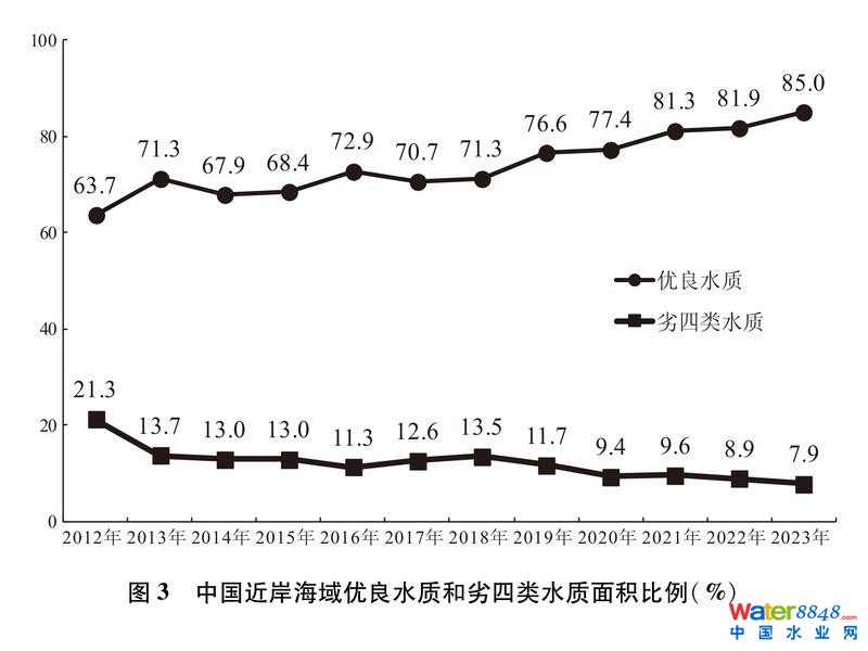 通過深入推進重點海域綜合治理、陸海污染協(xié)同防治,持續(xù)建設(shè)美麗海灣,中國近岸海域水質(zhì)總體改善,2023年優(yōu)良水質(zhì)面積比例較2012年高出21.3個百分點。