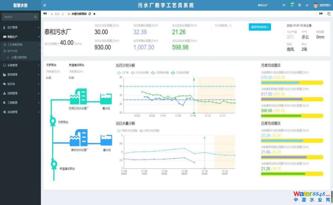 本項(xiàng)目基于污水處理廠高質(zhì)量轉(zhuǎn)型需求,總體目標(biāo)是融合機(jī)理算法和機(jī)器學(xué)習(xí)算法,建立用于管控工藝生產(chǎn)的數(shù)字工藝員系統(tǒng),形成24小時(shí)在崗的虛擬工藝員,以便對污水廠工藝生產(chǎn)進(jìn)行全天候不間斷的精細(xì)化自主調(diào)控,同時(shí)對于支撐污水處理高效運(yùn)行的設(shè)備管理和安全管理工作進(jìn)行有針對性的智慧化升級。