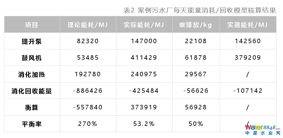 從最終的能量匡算結果來看,此案例污水廠從剩余污泥回收的能量可以提供能耗總量的53.2%,也就是說案例污水廠如果僅僅依賴污水中的有機物通過厭氧消化回收能量,距“能量平衡”目標尚且有一半的差距。
